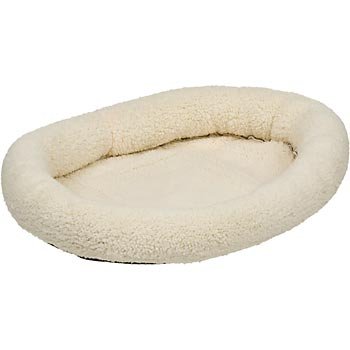 PETCO Donut Cat Bed in IvoryBeds help to protect your cat from cold floors and summertime heat while providing a soft spot for snoozing.So, we know your cat will just love the comfort our PETCO Donut Bed will provide. Our bed has the durability of polyester but still surrounds your cat in a cozy softness. The soft stuffed sides ring the bed to create a cuddly nest while the skid resistant bottom helps to keep the bed in place.This machine washable bed is offered in a fashionable off-white color that will match any home décor.Finished Dimensions: 17" Length X 17" Width X 2.25" H..
